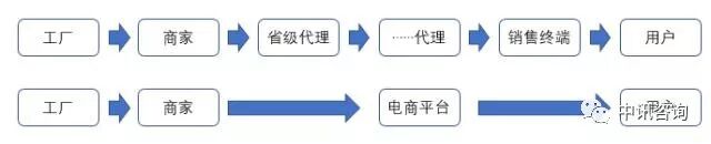 如上图所示,商品通过电商渠道的流通长度确实要远远短于传统线下商品的流通,尤其是在服装、家具家居这些高溢价品类上。